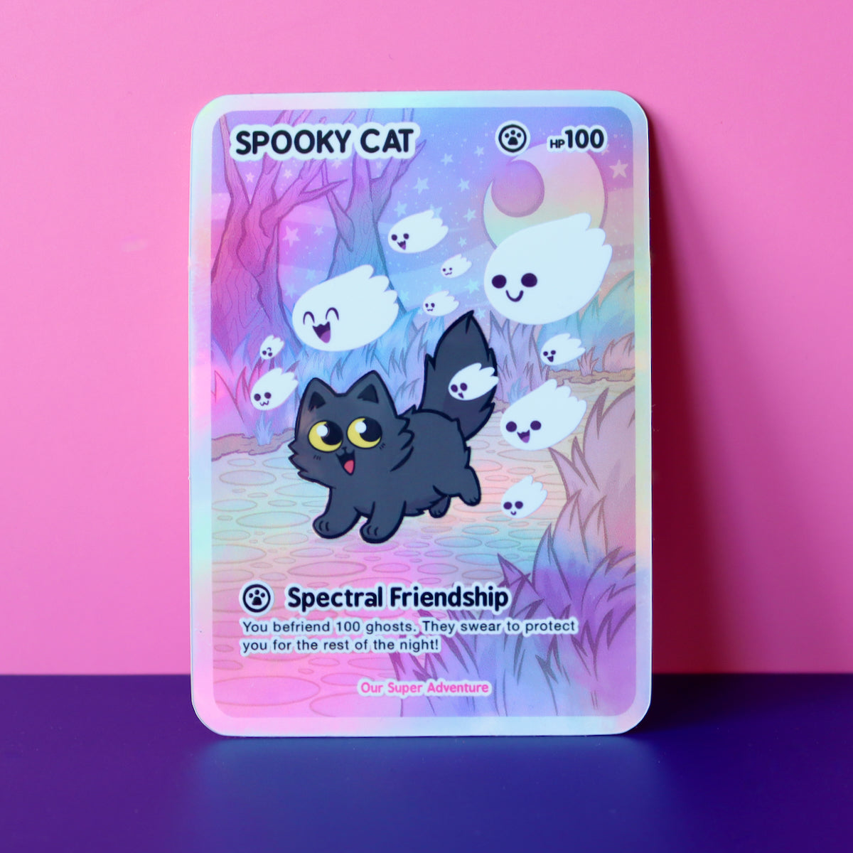 Spooky Cat Card Holographic Vinyl Sticker